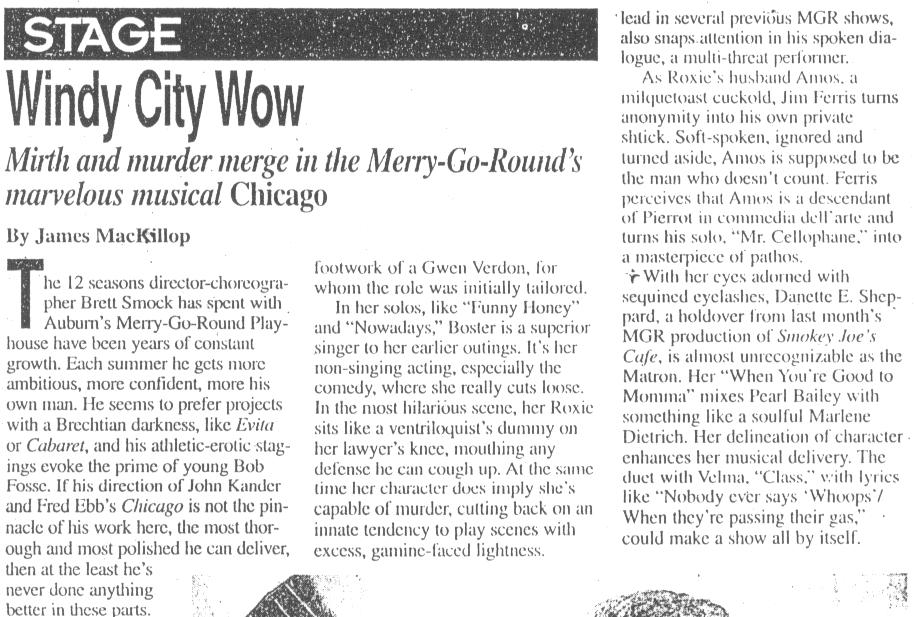 musical delivery. The duet with Velma, could make a show all by itself.”