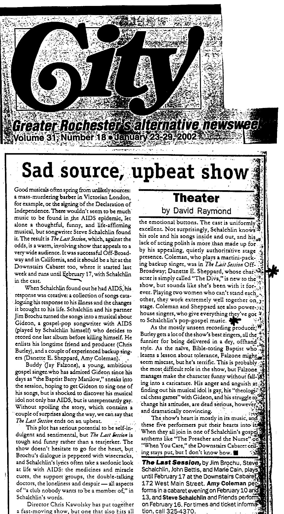 This review of The Last Session appeared in City: Rochester’s Alternative Newsweekly.
