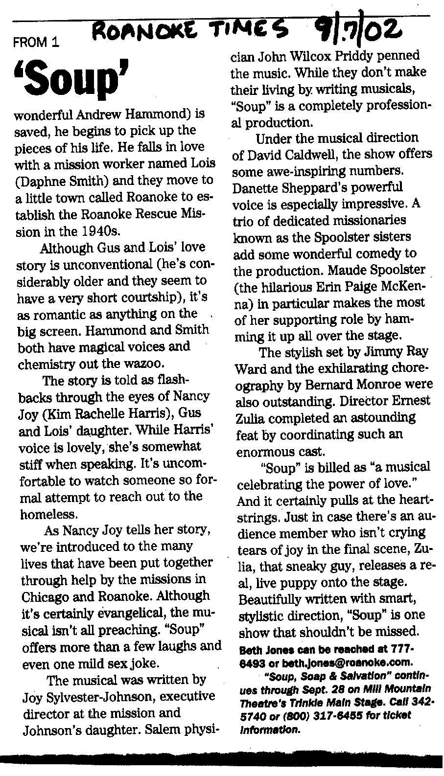 Excerpt: “Under the musical direction of David Caldwell, the show offers some awe-inspiring numbers. Danette’s powerful voice is especially impressive.”
