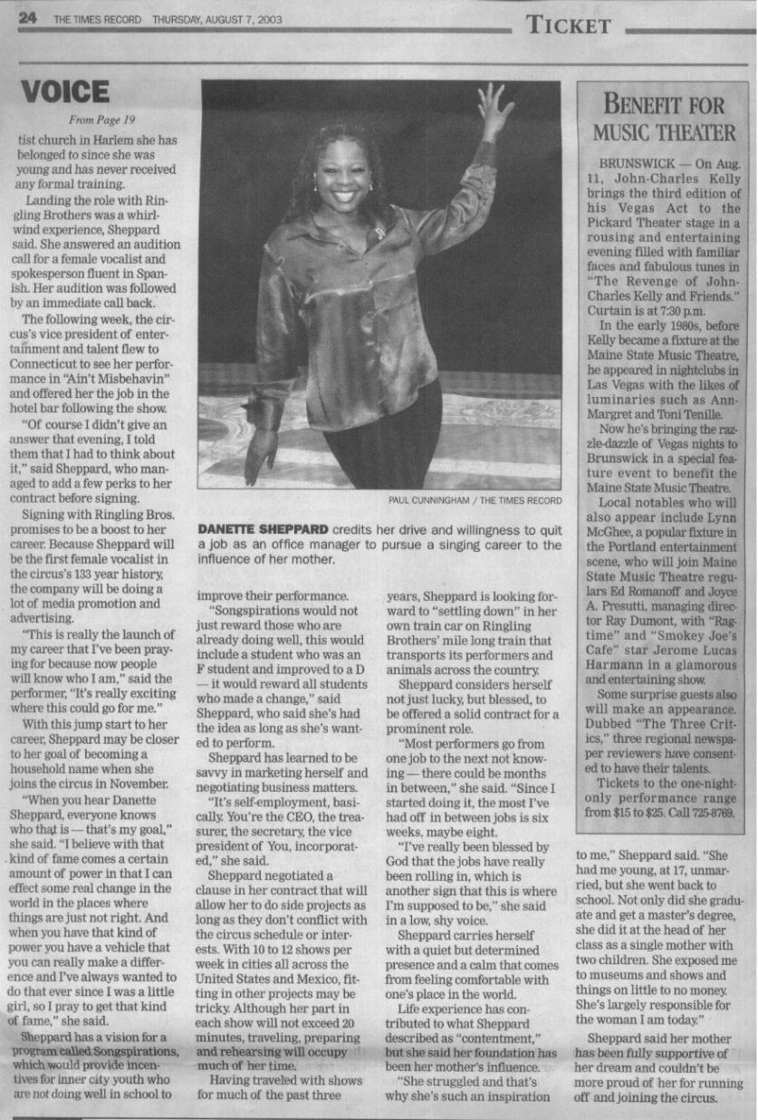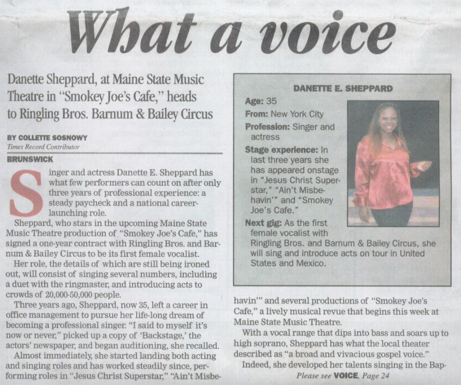 Excerpt: “[Danette’s] voice is a beautiful vocal instrument and richly complements this year’s circus, which is chock full of not only new acts, but wonderful tried and true acts“